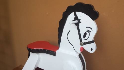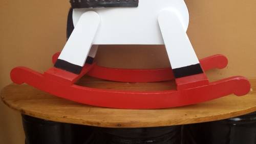 Beautiful red,white and black toddlers rocking horse. Strong, sturdy, beautifully painted and in a very good condition.Prefect for little boys and girls. Teaches them balance and how to have fun.