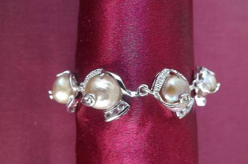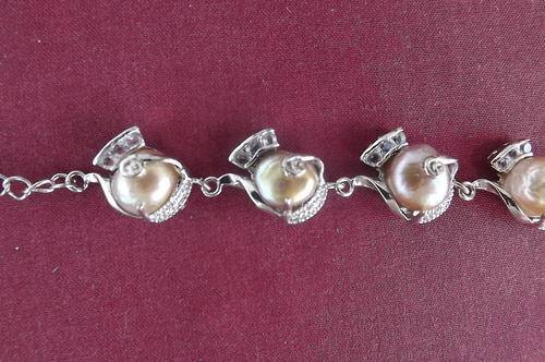 Beautiful rodium plated bracelet with caramel colour freshwater pearls