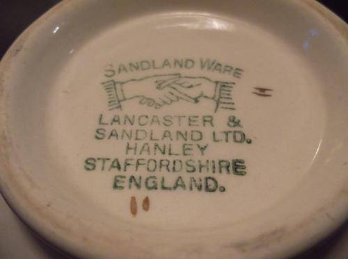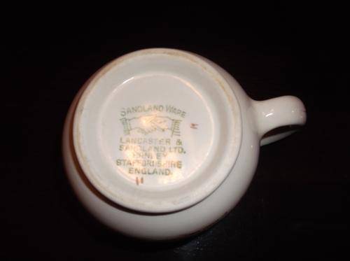 Here is a beautiful Sandland Ware jug made by Lancaster & Sandland Ltd, in Hanley, Staffordshire, England, which is on auction, dimensions approximately 9cm (h) x 12.5cm (w) wide from spout to handle. This piece is damage-free. Please note that the pictures form part of the description, and we urge you to check them out...
