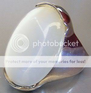 BEAUTIFUL SILVER AND WHITE CATS EYE RING - SIZE: 6.5