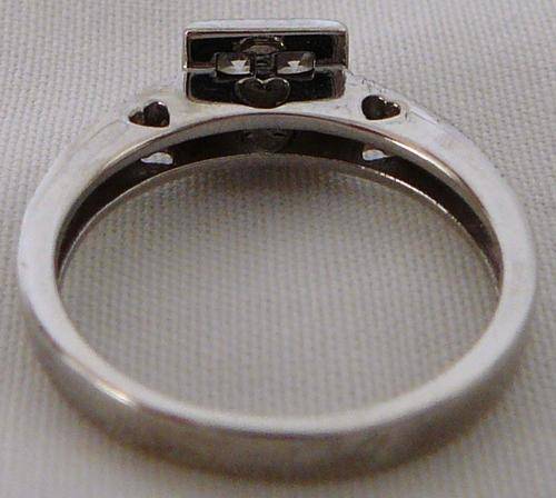 This is truly a Beautiful Ring, There are four 2 mm CZs set into a Square, and five small CZs on each side of the centre. The Ring size is 17.7 mm. It weighs 3.5 grams.