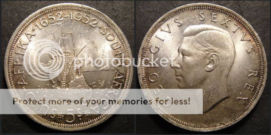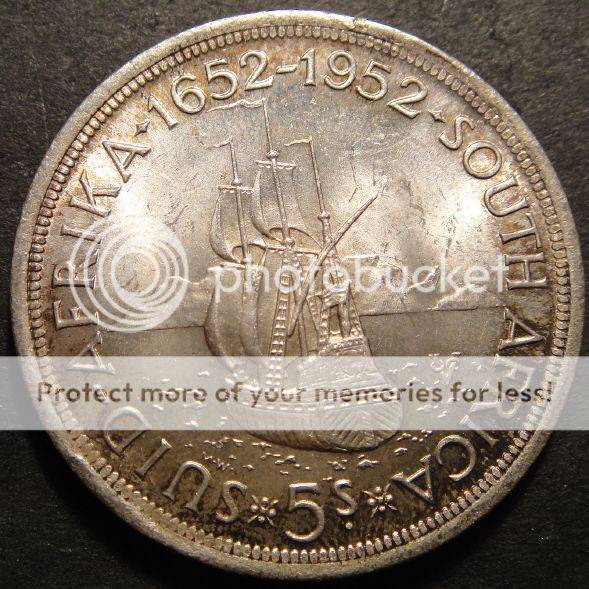 These huge 28 gram 5-Shilling pieces were struck in silver in 1952 for the tercentenary of Jan van Riebeeck’s arrival at the Cape of Good Hope n 1652.