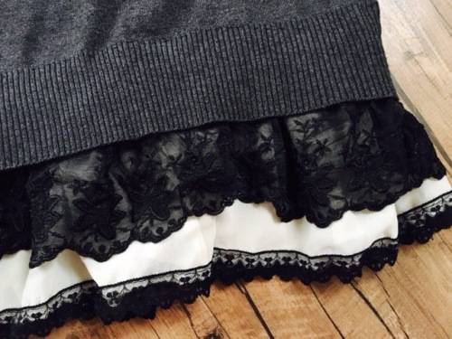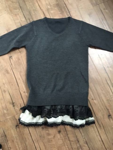 Beautiful Simple Classic Ladies Warm Dark Grey Wool Sweater Triple Layer High Quality Lace Size L