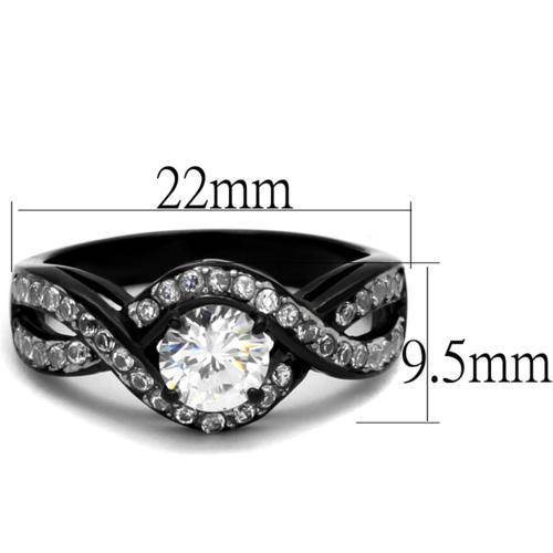BEAUTIFUL SIMULATED DIAMOND BLACK STAINLESS STEEL LADIES RING