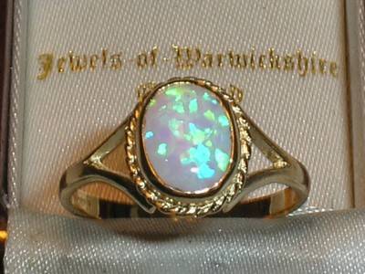 BEAUTIFUL SOLID 9CT GOLD FIERY OPAL SOLITAIRE RING - N