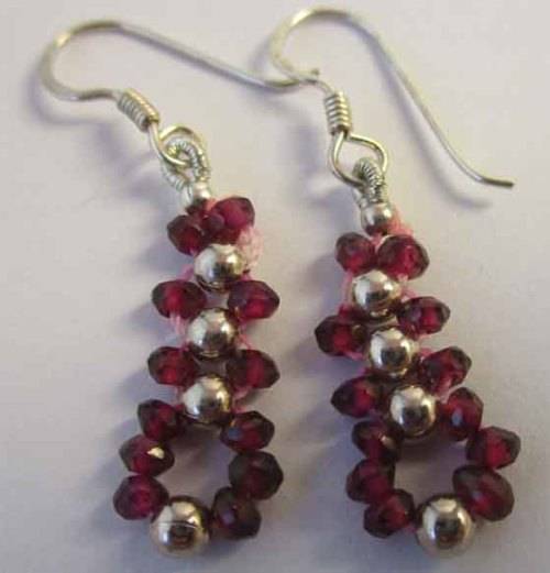 For pierced ears  Stones =  24 pieces of 3.00mm garnets- faceted cut-and  10 pieces of 3.00 mm sterling silver beads . Elegantly set / earrings with a lovely design, dangle new earrings, same as the photo.