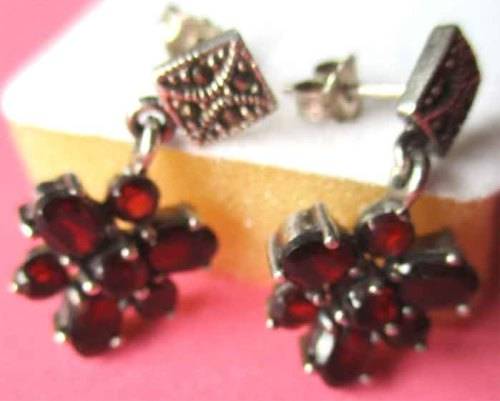 Beautiful, Sterling Silver , Marcasite and Garnets Earrings