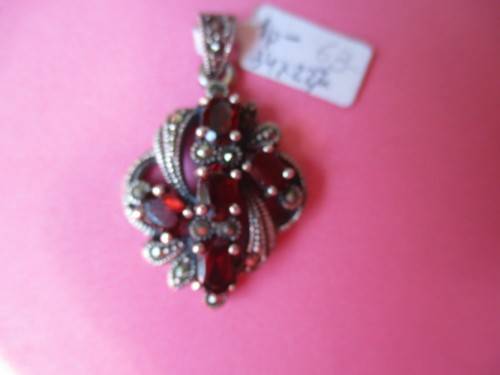 Beautiful Sterling Silver Marcasite and Garnets Pendant