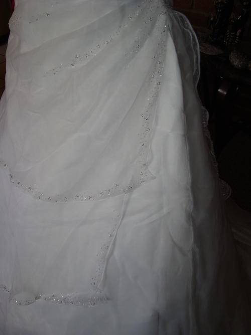 WITH PEARLS AND GLASS BEADS ON ORGANZA OVERLAY.