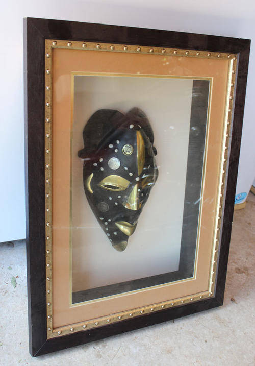 Beautiful Tikar Coin Mask in Large Box Frame
