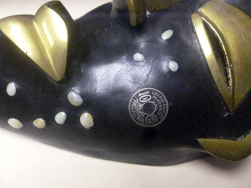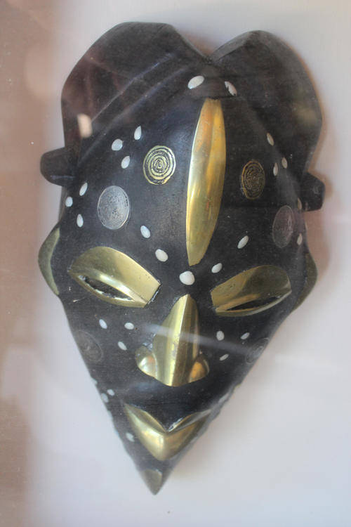 Beautiful Tikar Coin Mask in large box frame Hand carved Tikar Mask African masks are usually associated with a specific ceremony or society The mask measures approximately : 28 cm X 16 cm |