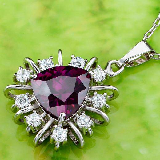 Beautiful Triangle Cut Amethyst & White Topaz Set In Silver Pendant Necklace With Chain