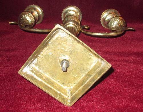 Beautiful Brass Candle Holder. See condition. Dimensions: Height: 30.8cm,Width: 27cm,Foot 8.8cmx8.8cm, width of candle holders:5cm,opening of candle holders:2cm. Shipping: R60.00