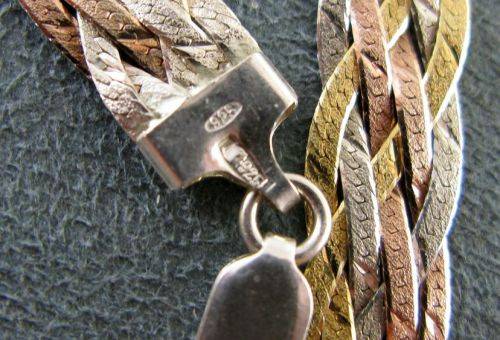 Beautiful Unusual design Italian 925 Sterling Silver Vintage Three Tones Necklace. Size: 61 cm long & 9 mm wide.  Weight: 23,4 gram. Condition: Fine. Free Shipping & Insurance!