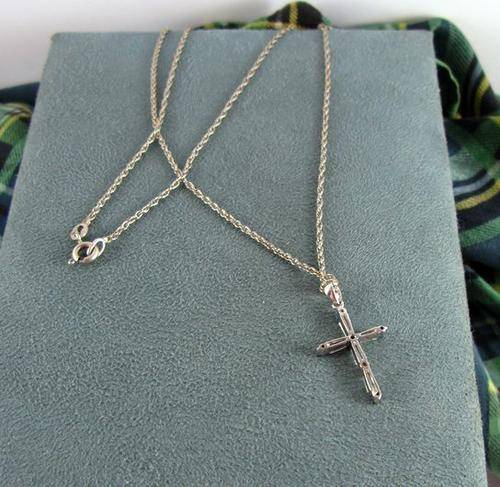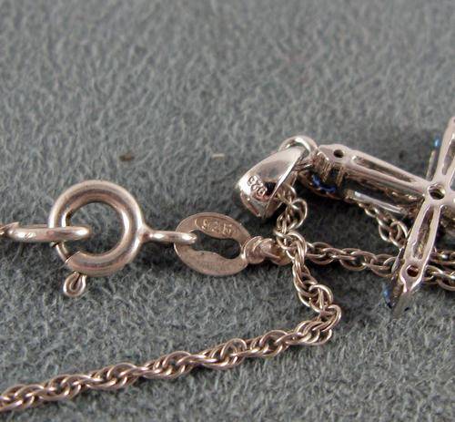 Beautiful Vintage 925 Sterling Silver Necklace Sapphire & CZ Cross Pendant & Silver Chain. Size: Pendant is 30 x 16 mm . Chain is 61,5 cm long. Weight: 3,3 gram. Condition: Fine.