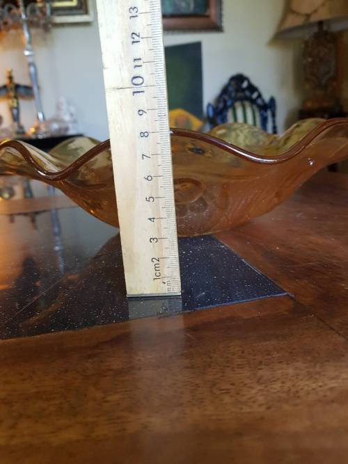 This carnival glass bowl has a beautiful lustre and is still in a very good condition. No chips or cracks. Please click on the link to view all my amazing items. All my items have the option to make an offer. Except for items on auction. https://www.bidorbuy.co.za/seller/3696399/Mr_Ooogles