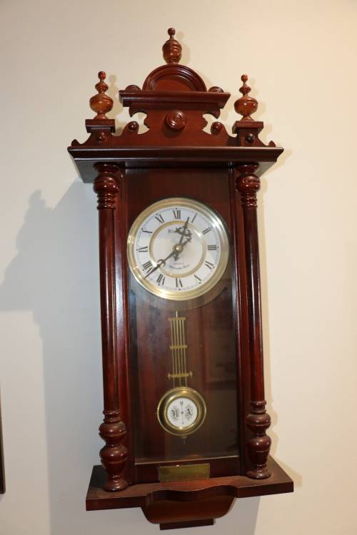 The clock is in a good running condition. The clock size is 28 x 75 cm.