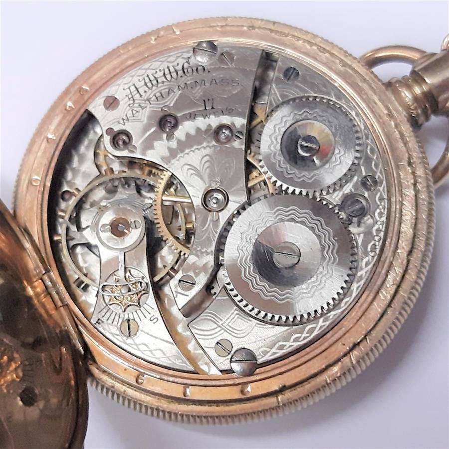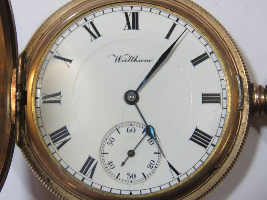 Beautiful Waltham Mass gold plated full hunter pocket watch - No glass - Working