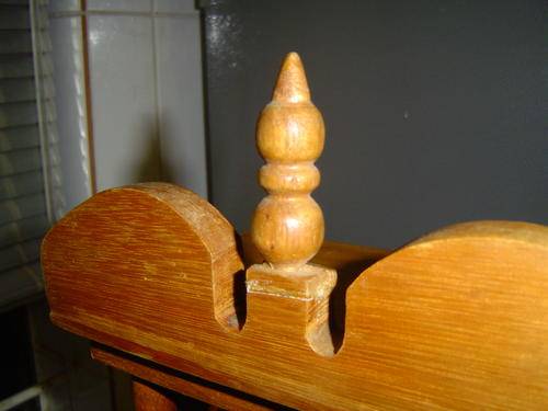 A beautiful hand crafted working quartz clock that stands 73cm tall and 22cm wide.made from wood.please note that the little point on top has fallen of and has been glue back into place also there is a chip of wood that has come of the base at the back.please have a look at the next 2 pics.postage will be R120 due to the size of the item