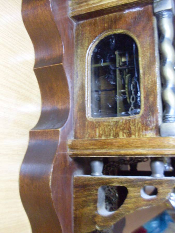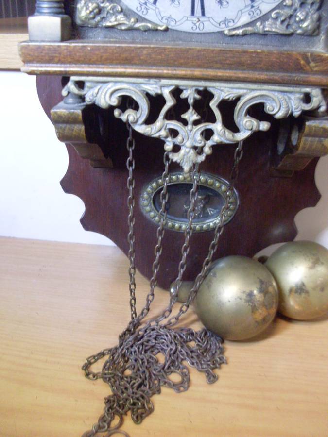 BEAUTIFUL ZAANSE DUTCH BRASS/WOODEN WALL CLOCK....WORKING...HAS ORIGINAL CHAINS BRASS PEAR SHAPE WEIGHTS AND PENDULUM