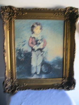 Beautifully framed oilograph of "French Boy with A Dog" by Thomas Gainsborough in a ornate gold frame the picture is 33cm x 38cm and is reay to hang, I have listed a set of three of these picture in the same frame and they look stunning as a group.