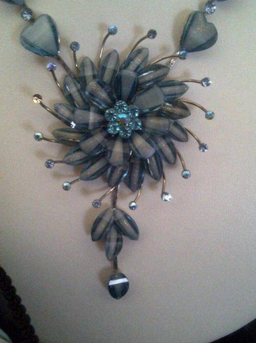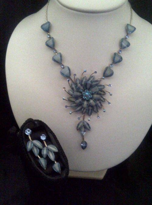 Bedazzled Blue coral flower Necklace & earing set . GORGEOUS