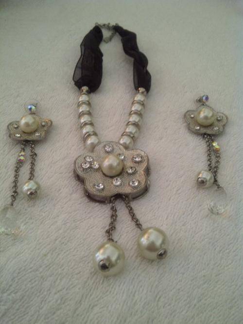 Bedazzled PEARL pendant Necklace & EARING SET. GRACIOUSLY ELEGANT!