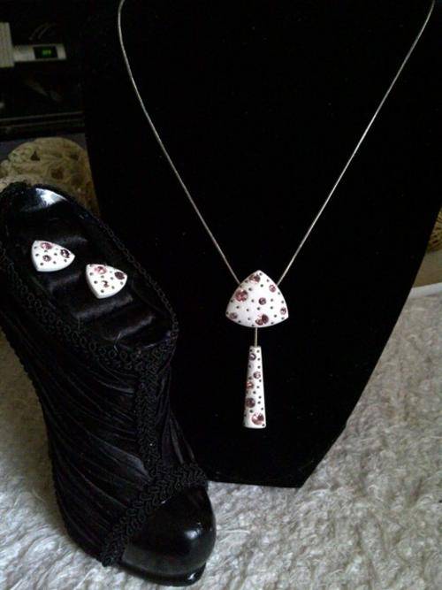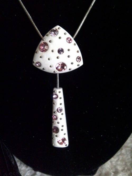 Bedazzled Pink & white Pendant Necklace & earing set . GORGEOUS