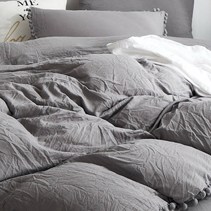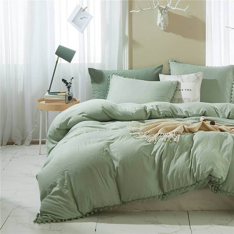 Bedding Pom Pom Duvet Cover Set Ball Fringe Home Textile Solid... (BED SIZE: TWINSIZE | COLOR: PINK)