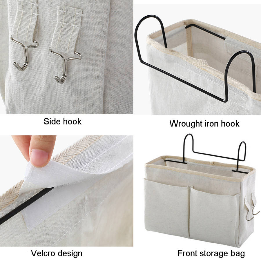Features: a Made of high quality canvas material, it is environmentally friendly and durable. a With wrought iron hook, it is not easy to damage. a You can hang on the bed to store small items. a Lightweight and easy to carry. a Suitable for dormitory, bedroom, hospital, etc. Specifications: a Material: Canvas + Wrought iron hook a Color: White, Grey a Size: 30 x 26 x 11cm Package Included: a 1 x Bedside Storage Hanging Bag Note: a Due to different producing batches, product details might be a little different. If you minding the difference, please buy it carefully. a Please allow 1-3CM differs due to manual measurement. a Due to the different display and different light, the picture may not reflect the actual color of the item. Thanks for your understanding.