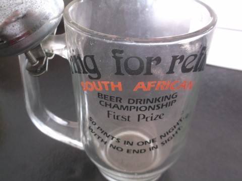 WADE ENGLAND "SLANTE" , "CHIN CHIN" "BOTTOMS UP" ETC. / BIERE / BEER BELLIES ARE MADE NOT BORN / 25TH ANNIVERSARY GRANADA SPANISH RESTAURANT, BULAWAYO. / KRUGER PARK / RING FOR REFILL WITH BELL