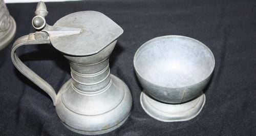 Beer stein/Jug, I think this one is pewter, does come loose as per pictures and as per last picture their is a dent, height 18cm. Postage R45.00