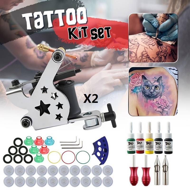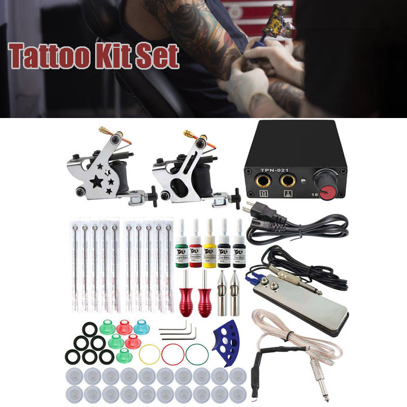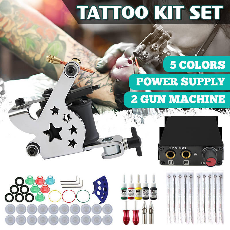 Beginner Complete Tattoo Kit 2x Machine Power Supply Set Grip 5 color Ink Needle Beginner Complete Tattoo Kit 2x Machine Power Supply Set Grip 5 color Ink Needle