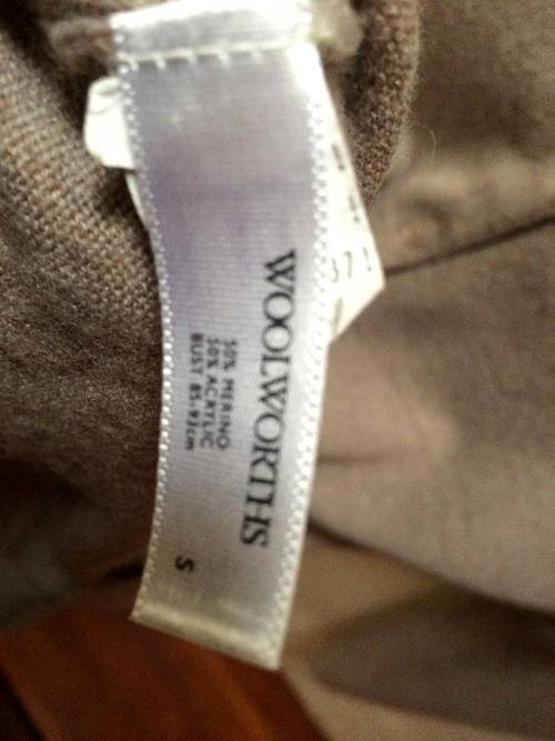 Beige colour 50% merino wool 50% acrylic Woolworths cardigan size Small. Please only bid if you intend to pay.