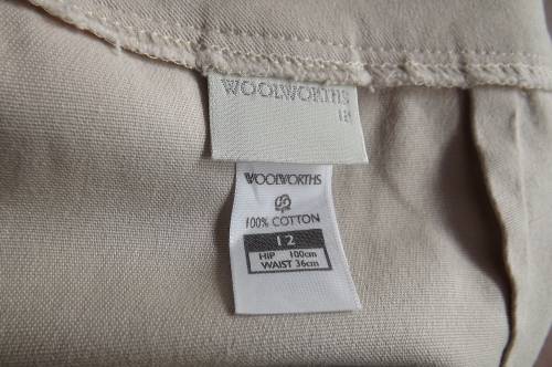 Beige WOOLWORTHS cropped pants in 100% cotton.Size 36/12.Slimming style with no pockets.As new