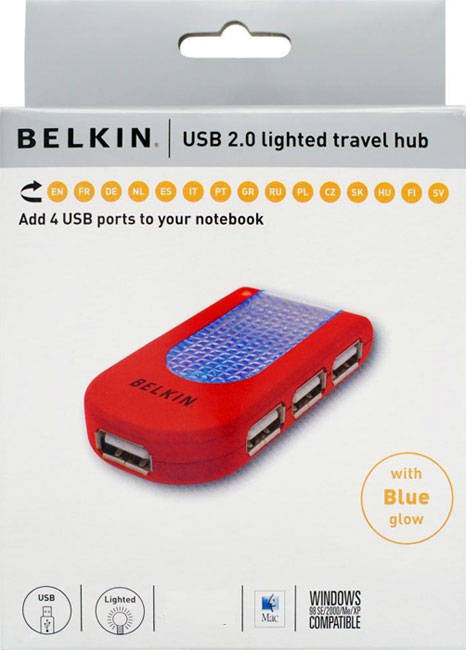 BELKIN RED 4-PORT USB LIGHTED TRAVEL HUB (BRAND NEW)