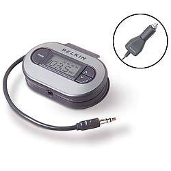 This auction is for a used Belkin Tunecast II FM Transmitter. They allow you to play yr ipod or other MP3 player through yr car-radio. It will work with all models of iPods, as well as all other MP3 players. Its used, but tested and working 100% and comes complete in its original packaging, and includes a cigarette lighter adaptor which you can use to power it instead of batteries.