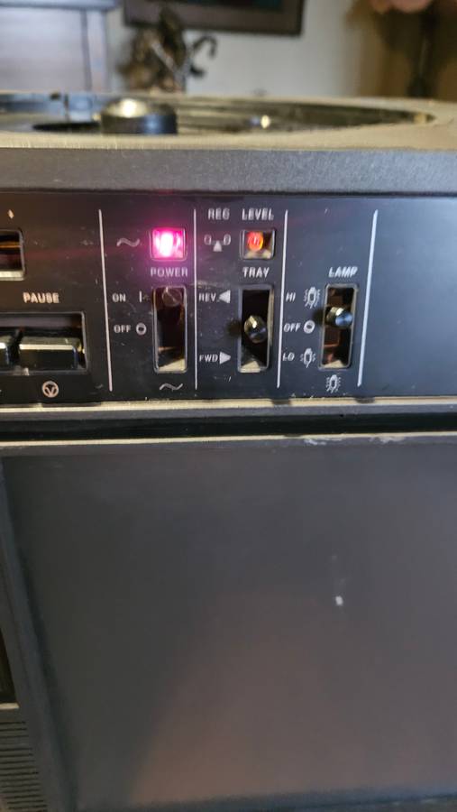 This projector powers on and the globe works, unfortunately have no slides to test fully. What you see in the photos is what I have of this item. Unfortunately no power cord.