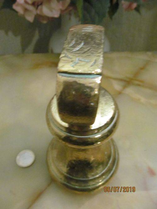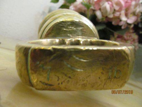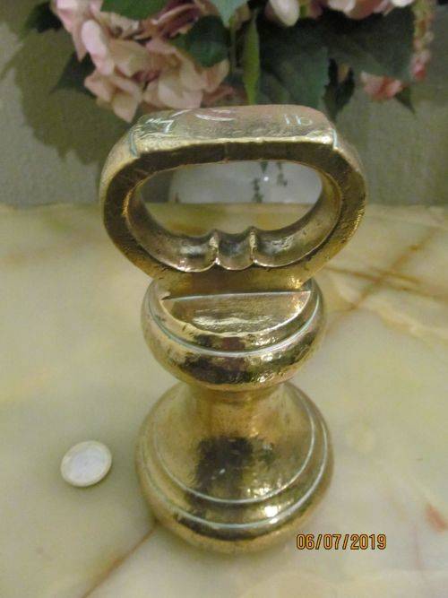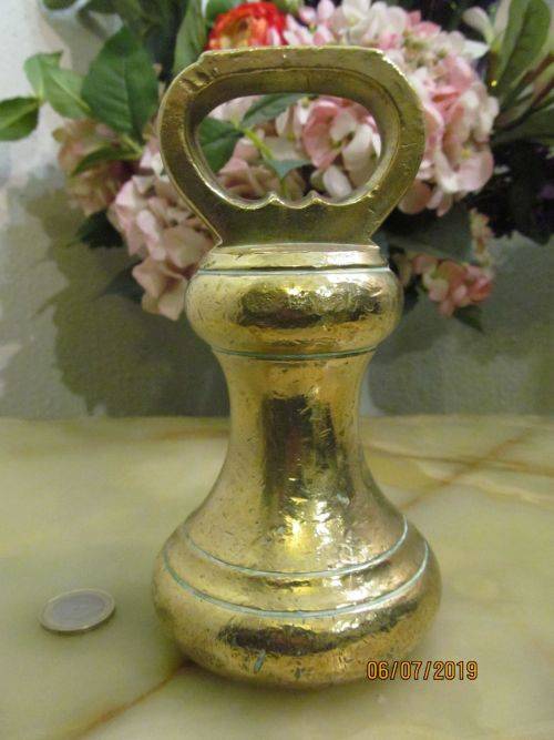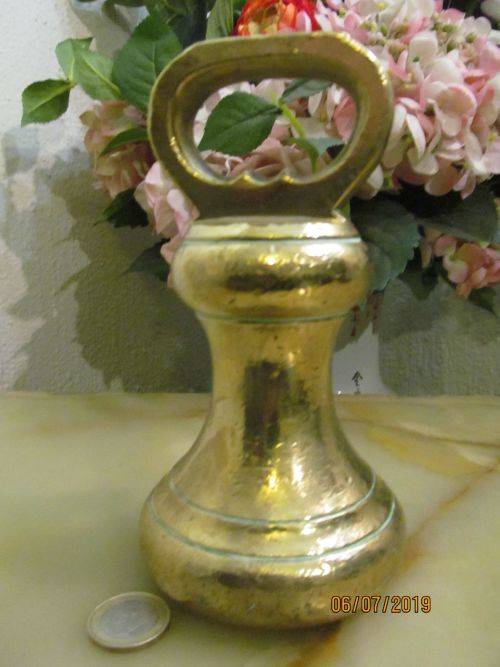 THE WEIGHT IS COVERED IN A THICK LAYER OF SOLID BRASS AND HAS A CAST IRON CENTER. THE ITEM CAN BE USED DECORATIVELY OR EVEN AS A DOORSTOP ETC