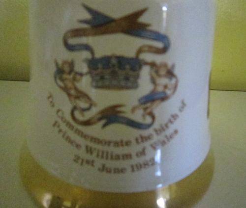 These presentation bottles are highly collectable. This particular brand is Bells, a well known Whiskey. The limited edition bottle was made in 1982 for the birth of Prince William. A fine edition to add to your collection.