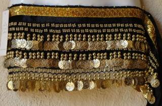 • Gold or Silver Coins Beads and Braiding on valour (slightly stretchy) fabric.