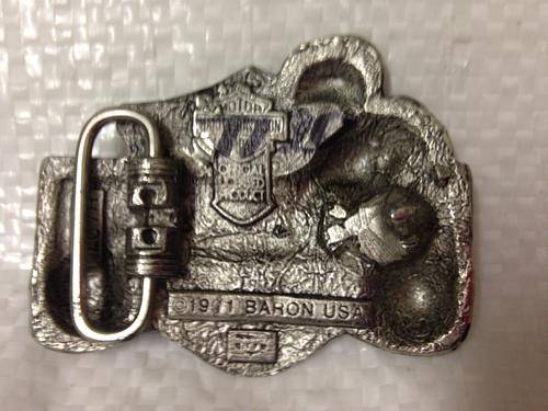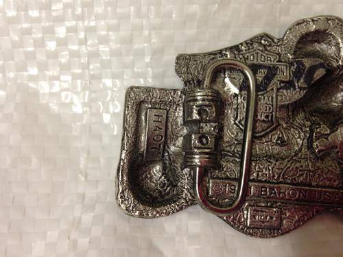 METAL BELT BUCKLE- BLACK/RED/SILVER COLOURS-STAMPED MARKS AT BACK SAY MADE IN USA -MOTOR HARLEY DAVIDSON-COMPANY -OFFICIAL LICENCED PRODUCT- 1991 BARRON USA -SEE PICTURE