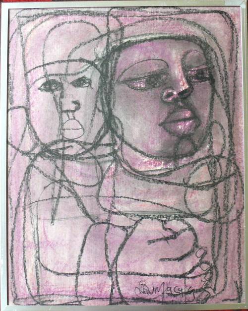 Ben Macala (1938 - 1997) Pastel - "2 Faces"