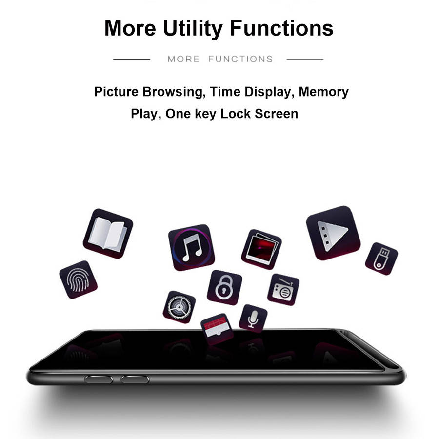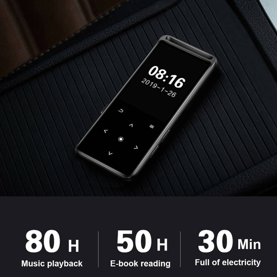 Features: It has the function of electronic reading, no matter at home or by car, you can easily read anytime and anywhere It can view some pictures, and the screen is sharper It can be used as a FM radio,whether it's on a run, in a car, at home or away.You can listen to music or practice listening anytime, anywhere It can be used for recording, which is convenient for our life It can connect to bluetooth, connect to mobile phone at any time to transfer files and so on Product name: MP3 player Size: 9.6 x 3.8 x 0.6cm/3.77 x 1.49 x 0.23inch Material: Aluminium alloy, Toughened glass, ABS(Acrylonitrile Butadiene Styrene) Item type: MP3 player Screen size: 1.8 inches Memory card type: SD card Expansion card: support Operating mode: touch + button type Interface: USB 2.0 Headphones: 3.5 Screen color: TFT screen Screen resolution: 320 x 240 Battery type: lithium battery Battery capacity: 300 Battery life: 30 (hours) Memory capacity: 16G Package Included: 1 x MP3 Player 1 x Data Cable 1 x Manual