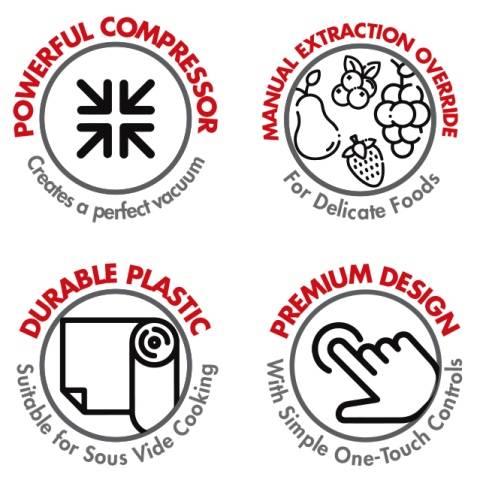Bennett Read Vacuum Sealer - Powerful compressor that creates a perfect vacuum, Premium design with simple one-touch controls, Manual extraction override for delicate foods, Food-grade durable plastic that is suitable for sous vide cooking, 1 x 3m food-grade plastic roll included, Retail Box, 1 year warranty