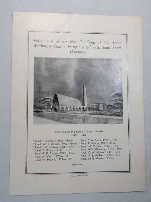 Berea Methodist Church Johannesburg central circuit March 1961 closing ceremony programme