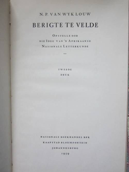 tweede druk 1959 hardeband met stofomslag 69 bladsye, die stofomslag het n paar merkies, die hardeband is goed, paar roesvlekkies in boek, die teks is skoon en die binding goed-geen oorsese versending