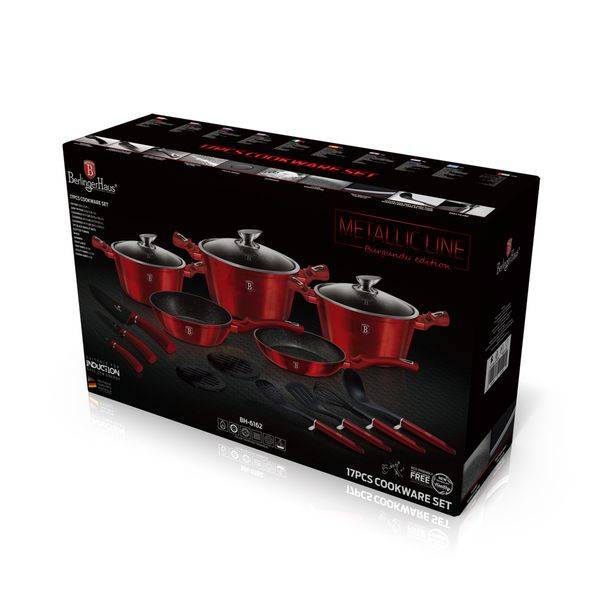 Berlinger Haus 17-Piece Marble Coating Cookware Set - Burgundy Edition