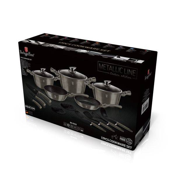 Berlinger Haus 17-Piece Marble Coating Cookware Set - Carbon Edition