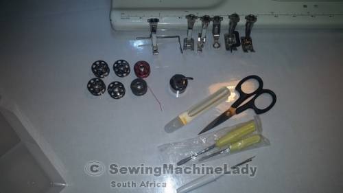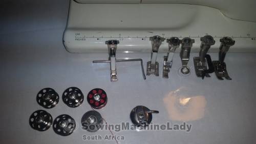 6 BOBBINS AND 8 PRESSER FEET INCLUDED